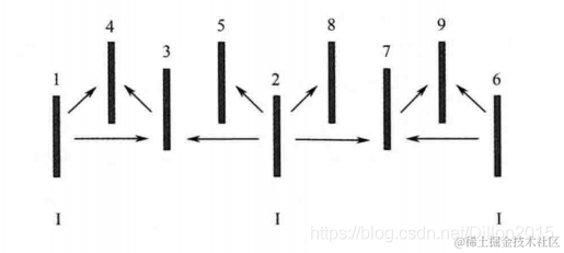 上图展示了不同帧间的时域依赖关系。图上数字是编解码顺序,从左到右是播放顺序,即解码顺序为1,2,3,4,5,6,7,8,9,播放顺序为1,4,3,5,2,8,7,9,6。