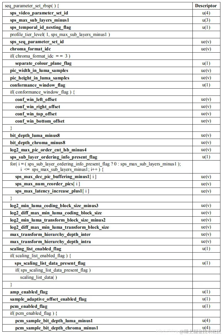 下表是SPS的语法结构: