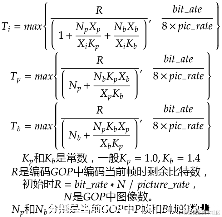 待编码帧(Ti、Tp、Tb)目标比特计算方式如下: