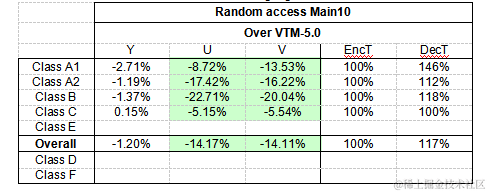 在VTM5.0的RA配置下1.20% (Y), -14.17% (Cb)和14.11% (Cr) BD-rates, 117% 解码时间增加 。