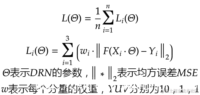使用DIV2K生成训练集和验证集,训练集包含800幅图像,验证集包含100幅。网络在YUV空间训练,所以需要将DIV2K的图像由RGB空间转换到YUV空间。使用VTM2.0.1在AI(All Intra)配置下使用不同QP压缩图像。压缩后的图像和对应的QP作为网络输入。压缩前的图像作为ground truth。假设压缩图像集为{X},对应的ground truth集为{Y},则损失函数如下: