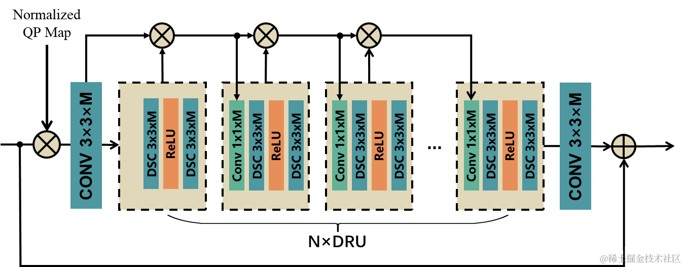 - 归一化的QP map和重建图像一起输入DRN,仅用一个模型就可以适应不同QP情况。