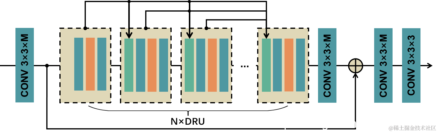N代表DRU(dense residual unit)数量,M代表卷积核数量。