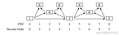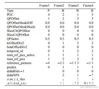 以上图为例,每个GOP包含4帧图像,按解码顺序排列。Frame1对应POC=4的图像,它参考了图像0,所以参考图像为-4。Frame2对应POC=2的图像,它参考了图像0和4,所以参考图像为-2,2。Frame3对应POC=1的图像,它比较特别虽然只参考了图像0和2,但是还需要保存图像4用作未来图像参考,所以参考图像为-1,1,3。Frame4对应POC=3的图像,参考了图像2和4所以参考图像为-1,1。
