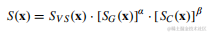 其中VS_m(x)=max(VS1(x),VS2(x)),作为S(x)的权重。omega是整个像素空间。