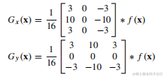 上图中a是参考图像,b是失真图像失真类型是对比度失真。cd分别是ab的VS map,可以很清楚的看到b相对于a失真很大,而其对应的VS map却没有反映出失真。为此需要使用额外的特征来弥补VS的缺陷,这里采用gradient modulus(GM)。计算梯度的方法有很多, Prewitt operator, Sobel operator,Roberts operator, Scharr operator等,这里采用 Scharr operator。首先计算图像f(x)的水平和垂直梯度: