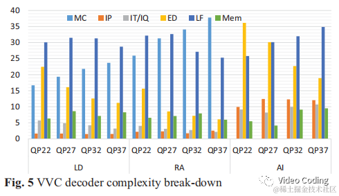 上图Fig.5是VVC解码器各模块复杂度分布情况。可以看到LF占比很高,平均SAO占3%,ALF占13%,DBF占17%。