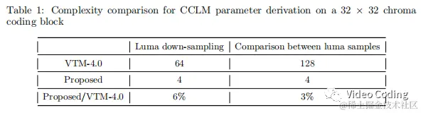 对于32x32的色度块,且上方和左侧邻域像素都可用时,该方法复杂度减少如下表所示,