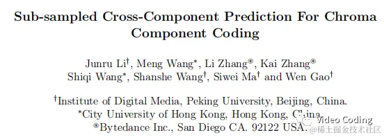 本文来自DCC2020论文《Sub-sampled Cross-Component Prediction For Chroma Component Coding》