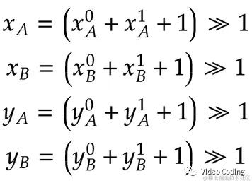 在该方法中,亮度块仅需对指定位置进行降采样操作,极大提高了内存访问效率。同时,比较次数也降为4次,获取两个较小的亮度值:xA0和xA1,获取两个较大的亮度值:xB0和xB1。对应的色度值分别是yA0,yA1,yB0,yB1。通过下式求得xA,xB,yA,yB,
