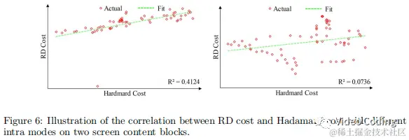 可以看见Hadamard cost和实际RDO cost成正比,但是其相关性较低所以对于full RDO list还有优化空间。