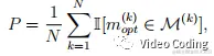 进一步研究最优模式和基于Hadamard 的RDO生成的模式间的关系,使用AVS3作为参考平台。选择Hadamard cost最小的X个模式组成 full-RD set ,M={m0,...,mx-1},在AVS3中X最大取5。研究对于不同块尺寸S,不同X时最优模式在M中的命中率P。通过对67个帧内模式进行full-RD搜索找出最优模式m_opt,如果m_opt在M中表示命中,如果不在则未命中表示Hadamard cost未能很好的预测出实际帧内模式。命中率P通过下式计算,