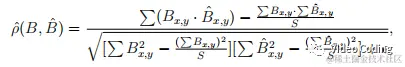 (x,y)表示像素的坐标。不同的u和v会导致相关性沿着不同方向。考虑到视频编码是以块为单位进行,通常使用皮尔森相关系数来评价块间的相关性。假设当前块是B,其相邻块是Bˆ,则它们间的相关性如下: