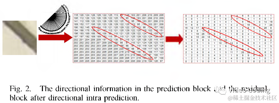 如Fig.2所示,残差中的方向模式通常和预测中的模式相关。因此可以利用预测数据消除方向信息。