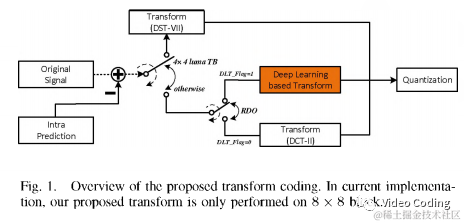 在帧内编码过程中,信号间的线性依赖可以通过线性预测和线性变换来消除。但是由于预测往往不够完美,导致一些依赖信息不能完全消除,结果在帧内预测后的残差中依然存在方向信息,传统的线性变换很难去除这些方向信息。进一步,线性变换更难去除信号中的非线性依赖。因此,文中提出基于深度学习的变换(DLT)来解决这个问题。