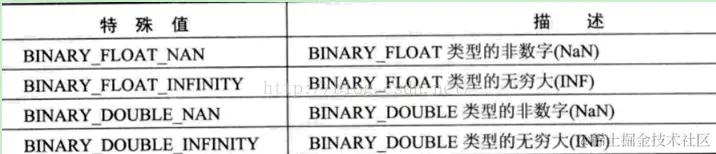 BINARY_FLOAT和BINARY_DOUBLE进行的数学运算是封闭的,返回结果要么是数字,要么是一个特殊值。