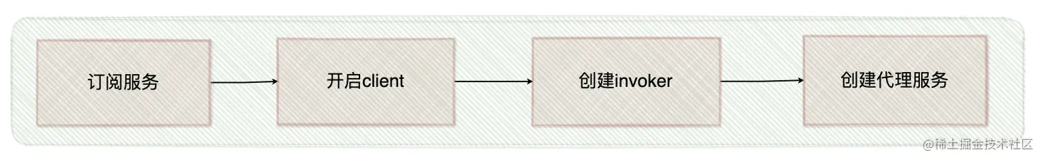 3.之后通过invoker为服务接口生成代理对象,这个代理对象用于远程调用provider,至此完成了服务引用