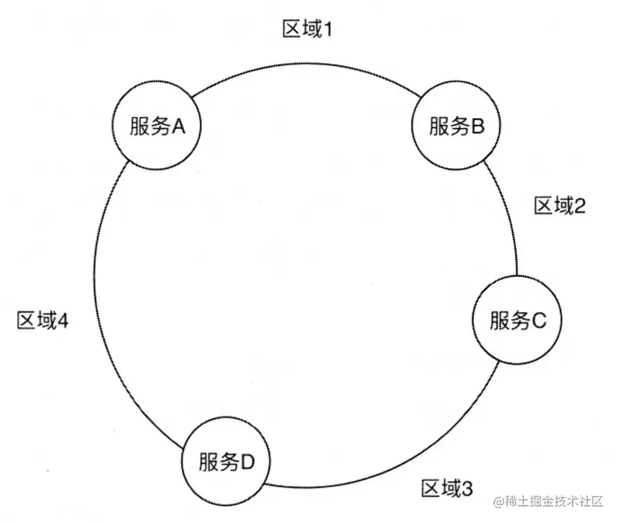 - 然后采用同样的方法求出存储数据的键的哈希值,并映射到相同的圆上。