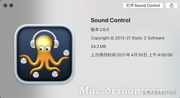 Sound Control for mac是一款音量控制软件,Sound Control破解版可以帮助用户独立调整和控制每一个App音量和均衡器,让你的MAC独立控制每个程序音量大小和均衡器,很好的避免个别App音量过大影响到其他程序的音量。mac.orsoon.com/Mac/177082.…