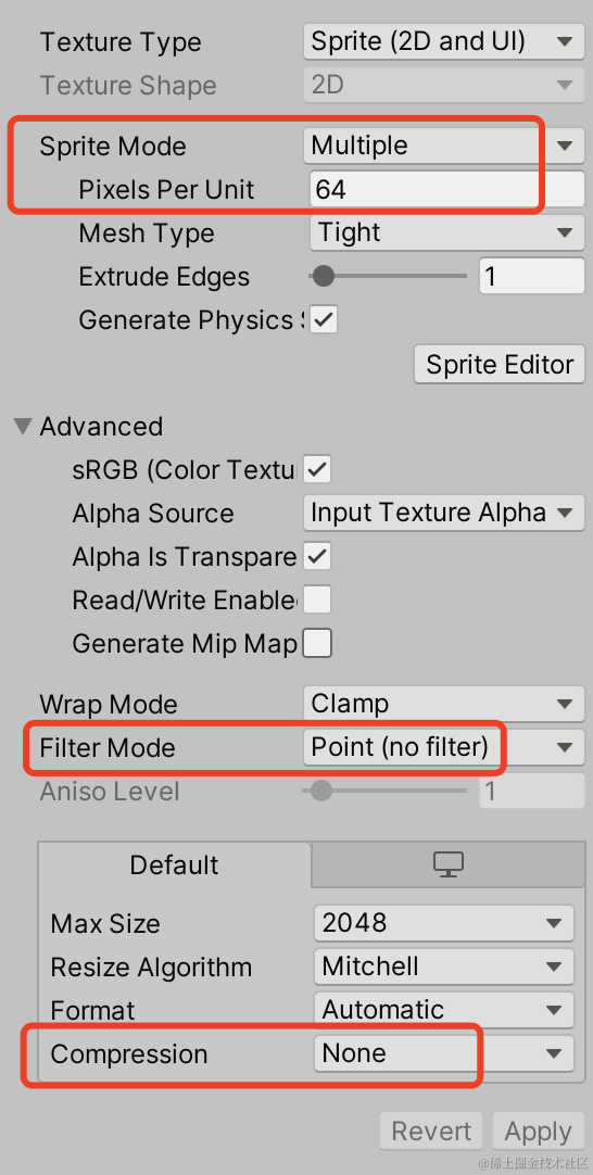 Pixels Per unit -- 64 - 修改过滤模式