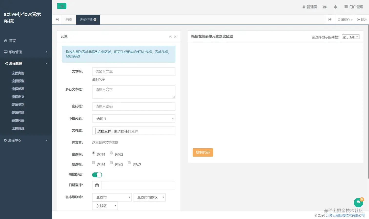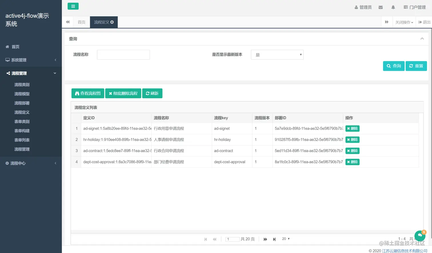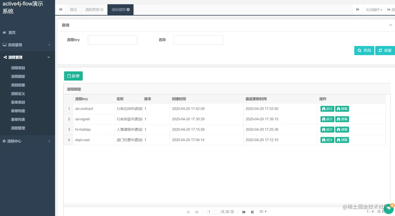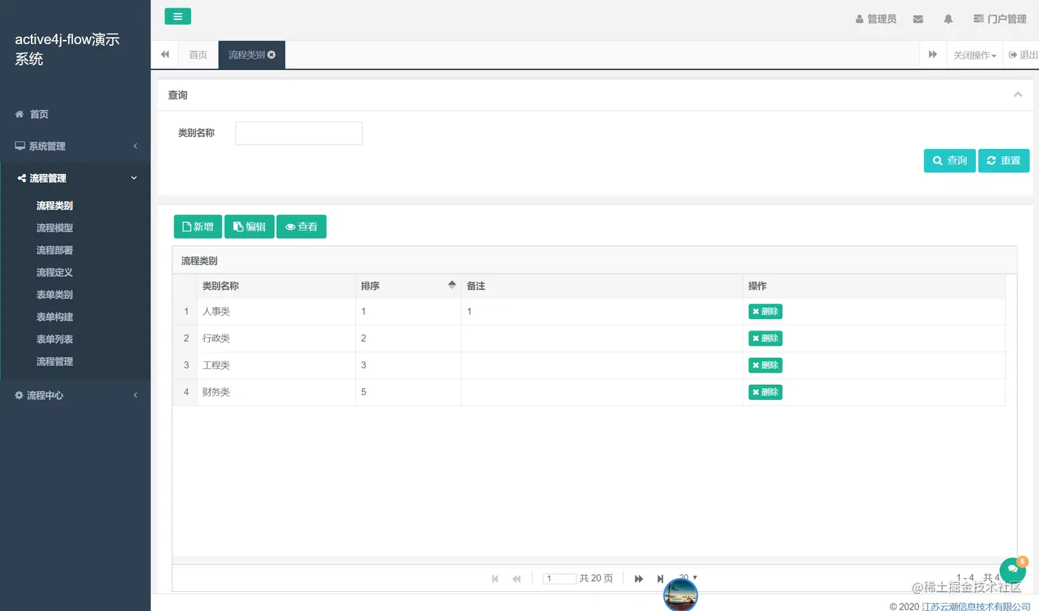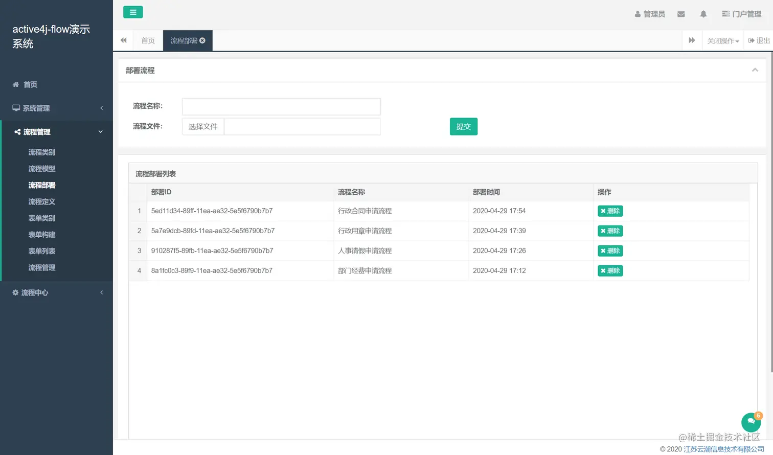 今天小编推荐一款基于SpingBoot2.0与activiti7.x开发的一套工作流程管理系统。以active4j-jsp为项目基础架构构建而成。以Spring Framework为核心容器,Spring MVC为模型视图控制器,Mybatis Plus为数据访问层, Apache Shiro为权限授权层, Redis为分布式缓存,JSP作为前端页面引擎,采用JSTL标签库封装组件。