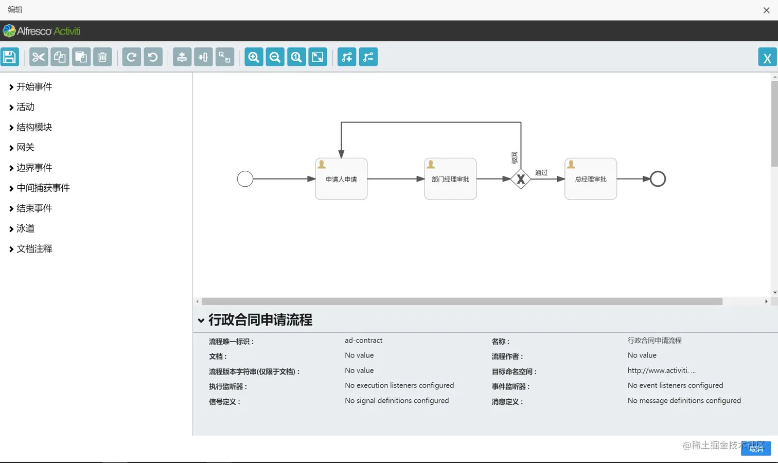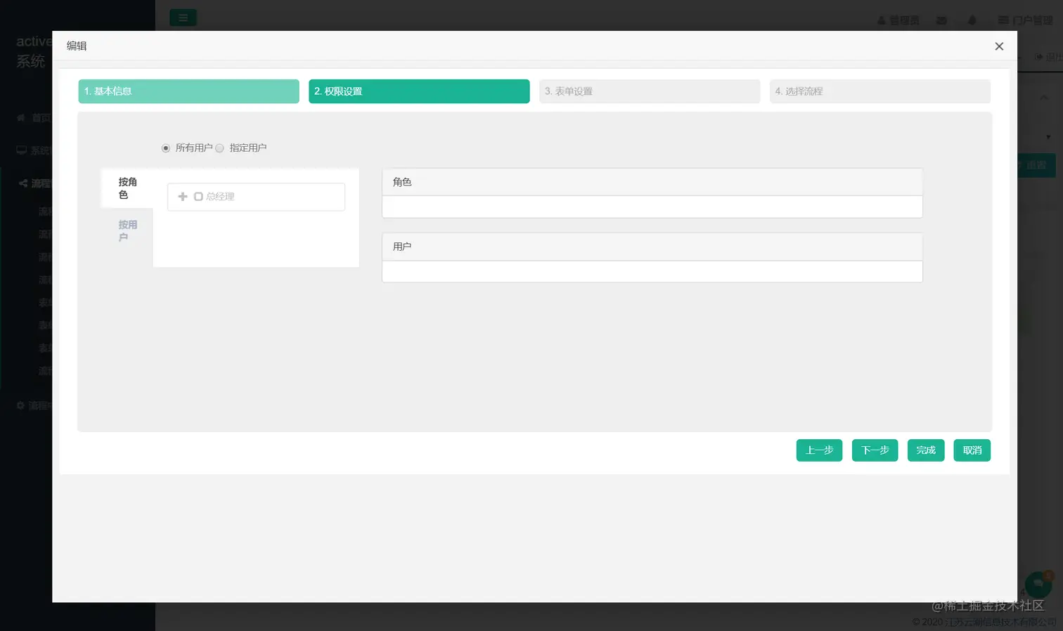 - 支持流程驳回,会签,组任务,权限管理,委托,审批意见等常用功能