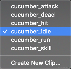 为黄瓜怪亲厚添加run、dead、idle、attack、hit五种帧动画,如下截图: