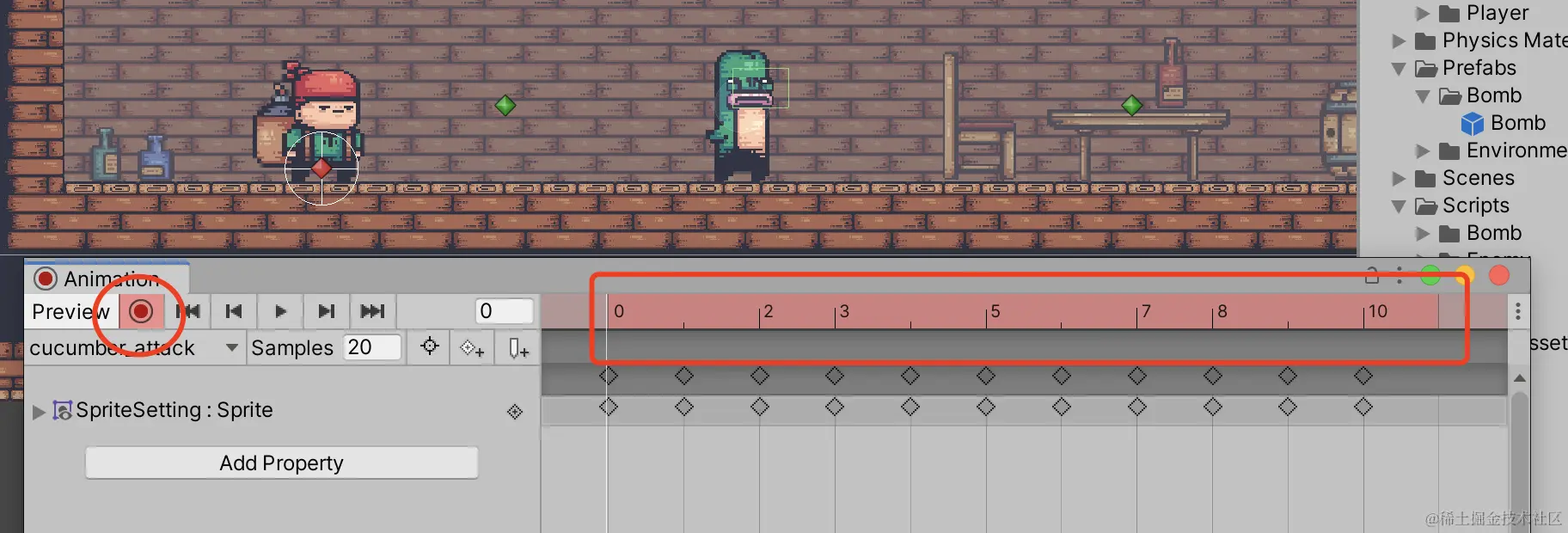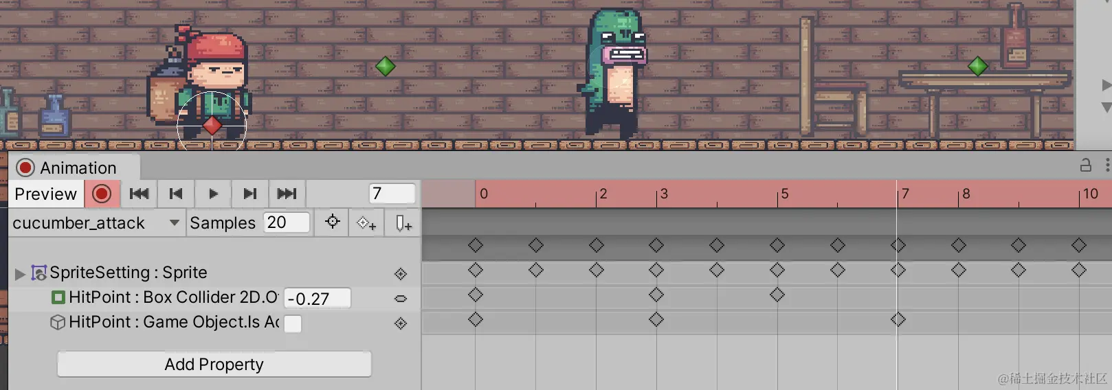 选中cucumber的精灵,在Animator窗口中进行修改。