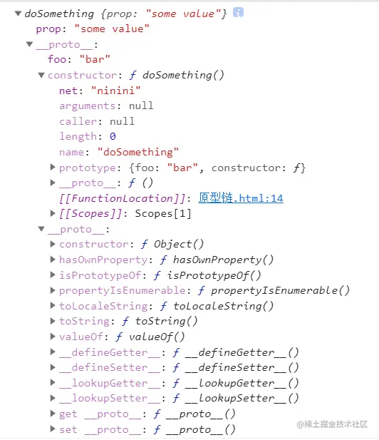 __proto__(也就是 doSomething.prototype)有这个属性, 那么 doSomeInstancing 的__proto__上的这个属性就会被使用. - 否则, 浏览器就会去查找 doSomeInstancing 的