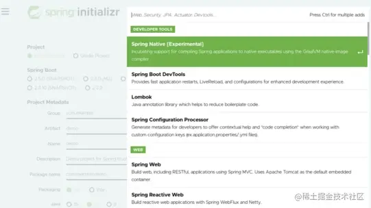 Stéphane Nicoll 在对 start.spring.io 和相关 IDE 的集成中,引入了对 Spring Native 的支持,所以现在这是探索如何使用 Spring 构建原生应用最简单的方式。