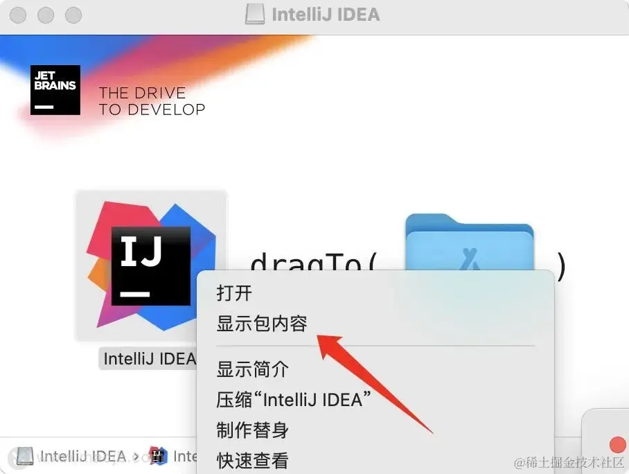 这边以我最近安装的IDEA为例,双击安装包后可以看到IDEA的安装程序右键显示包内容