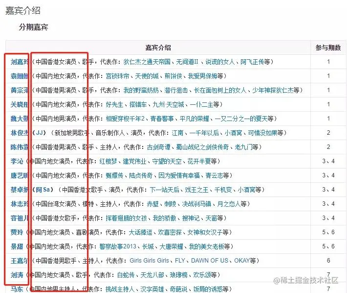 咱们主要是爬取嘉宾姓名和明星类型(演员、歌手等)