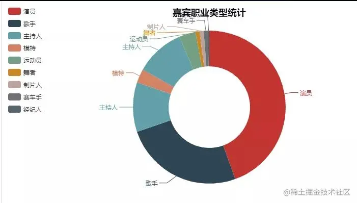 从统计图来看,嘉宾中职业最多的是演员,其次是歌手。