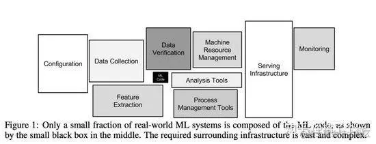 中间那个小小的几乎都快看不见的黑块,你放大图片,会发现里面写着ML Code,这就是「算法」的部分。当然,别被这个图吓到,这不一定全是你的工作,这里是一个团队的任务,这个团队可能是两人的团队,也可能是几十人的团队,但可以肯定的是,无论你在哪个公司,一个算法工程师都不太可能只做纯「算法」,不要忘了「工程师」三个字。