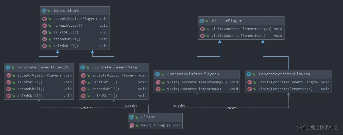 ConcreteVisitorPlayerA concreteVisitorPlayerA = new ConcreteVisitorPlayerA();