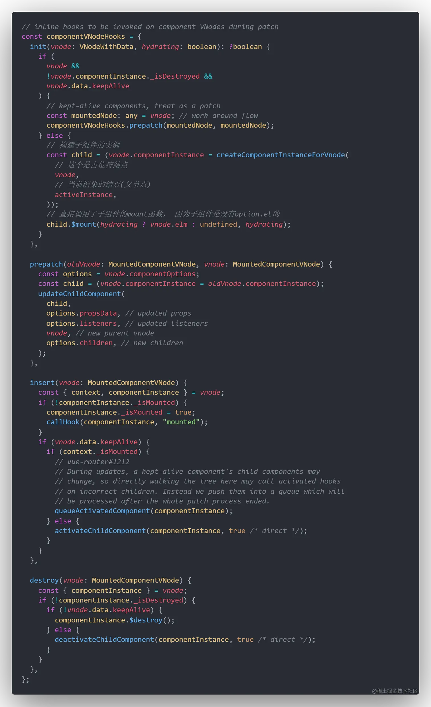 i为vnode.data内置的一系列hook中的init hook。hook内置的过程在vm.$createElement逻辑中。