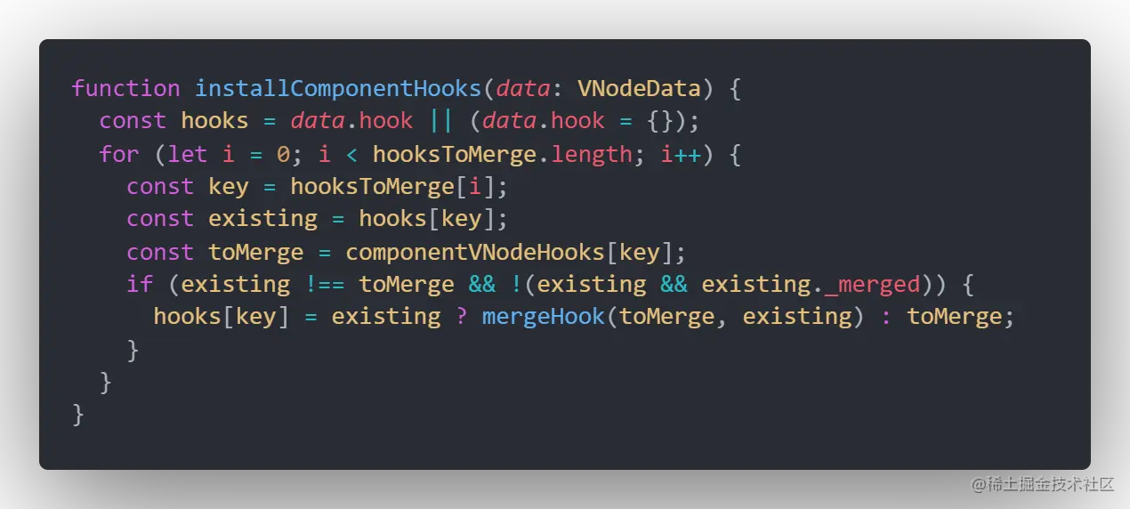 installComponentHooks将一些钩子函数埋入vnode中