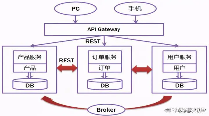 关键点(挑战): ,系统部署依赖,服务间通信成本,数据一致性,系统集成测试,重复工作,性能监控等