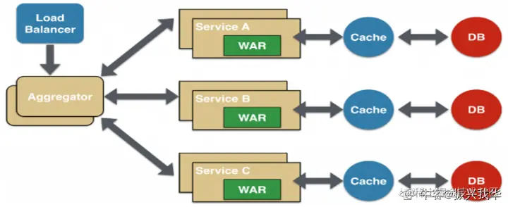 聚合器调用多个服务实现应用程序所需的功能。它可以是一个简单的Web页面,将检索到的数据进行处理展示。它也可以是一个更高层次的组合微服务,对检索到的数据增加业务逻辑后进一步发布成一个新的微服务,这符合DRY原则。另外,每个服务都有自己的缓存和数据库。如果聚合器是一个组合服务,那么它也有自己的缓存和数据库。聚合器可以沿X轴和Z轴独立扩展。