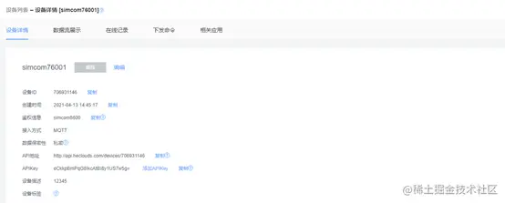 CAT11表示鉴权信息,鉴权信息可以在设备列表-设备详情进行获取。183.230.40.3, 6002 表示onenet平台的服务器和端口号,有了这些信息就可以用4G模块和自己创建的产品进行通信了。