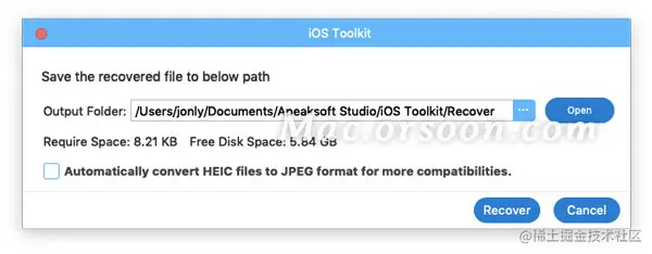 然后它将弹出一个窗口,以记录您设置的保存路径。它将根据此路径将目标数据保存在Mac上。