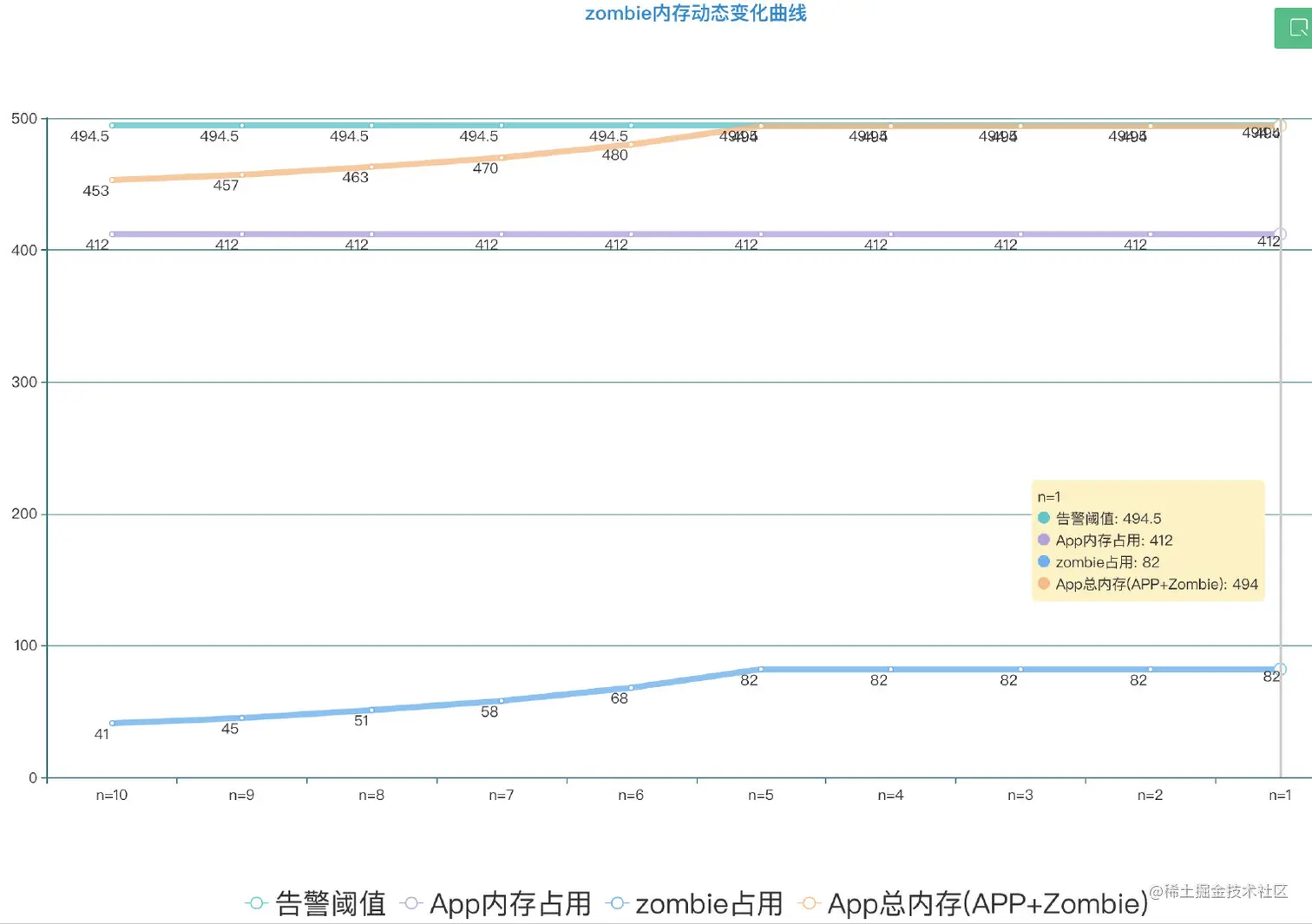 通过如图的线上数据可以看出 随着N的减小,zombie的内存阈值在增加,但是并不会超过内存警告阈值,确保了内存健康。