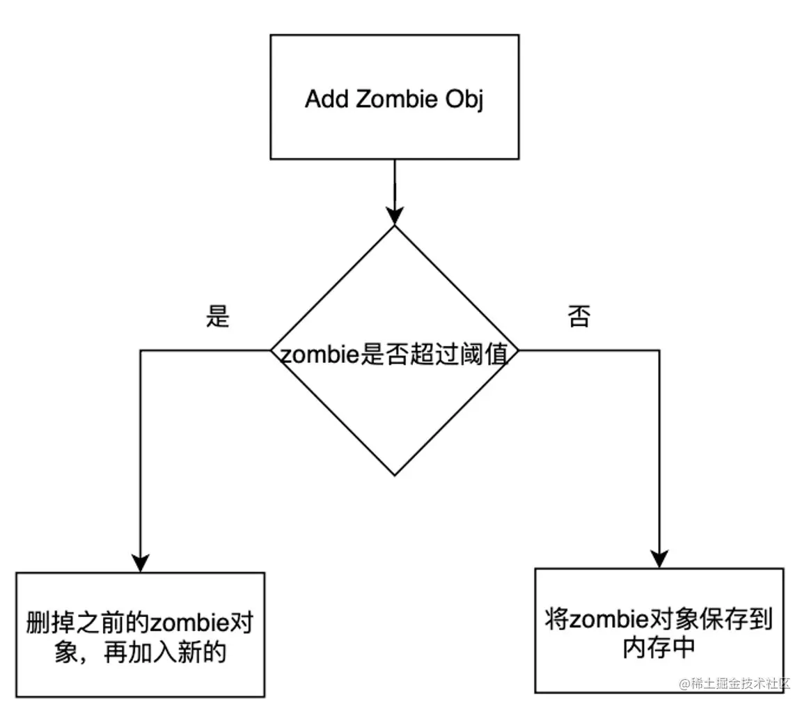 zombie更新策略问题:目前大家的做法都是在加入新的zombie对象时候检查是否超过阈值,达到阈值后删掉之前的zombie对象再加入新的对象,这样的清理逻辑是依赖于新zombie对象的加入,如果没有新对象的加入那么缓存空间也不会有变化,zombie空间一旦生成就无法删掉,无法做到缓存的自清理,等于App无故增大了内存占用。