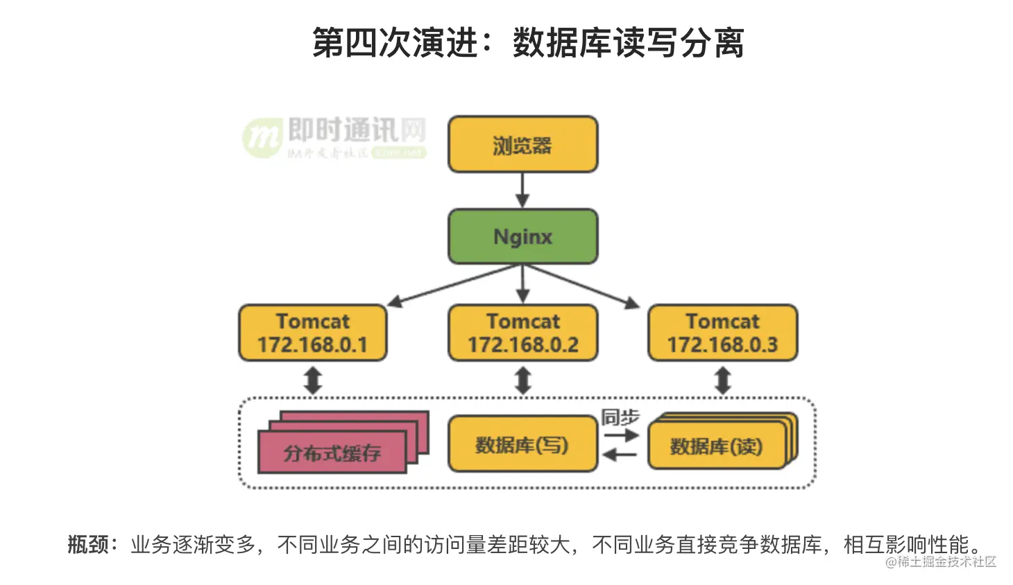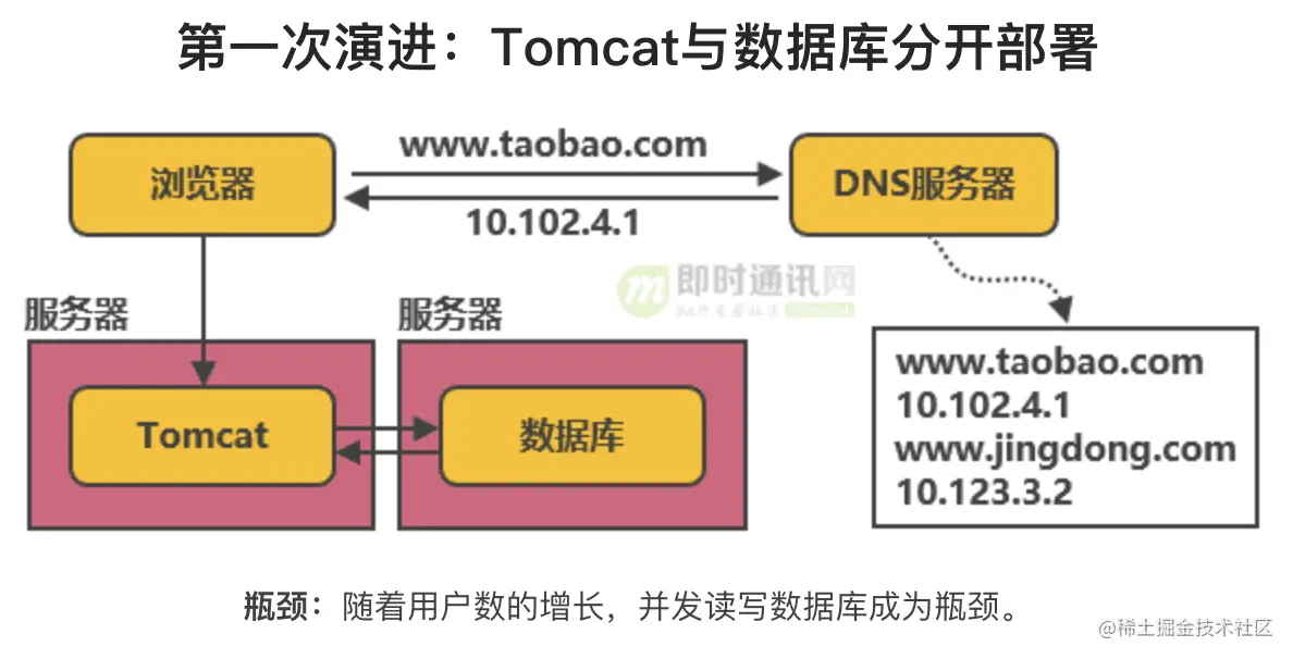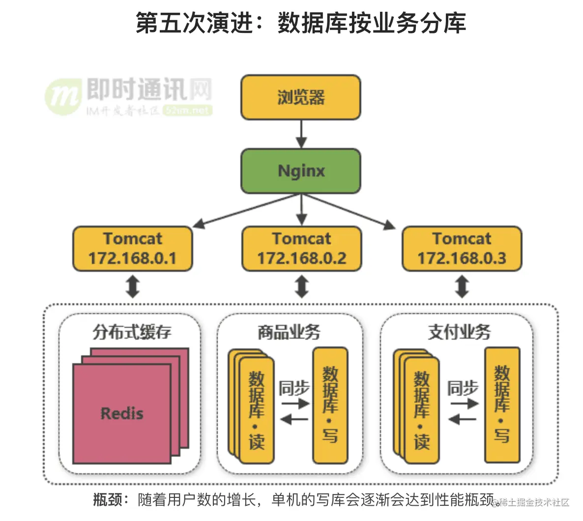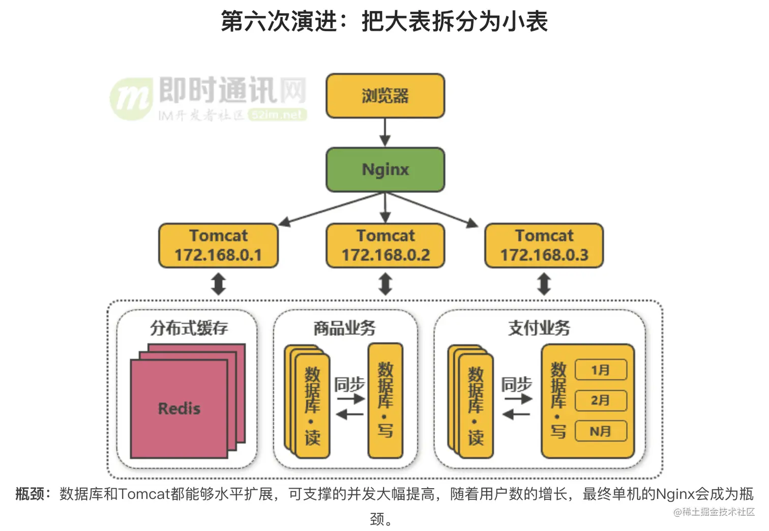 我们将淘宝网的架构演进(即时通讯网)整理到一个滑动图里,如下图所示: