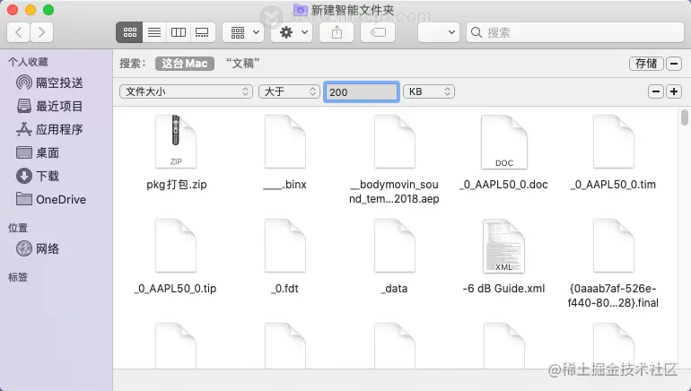 按序将后面的条件都填上,我们这次要找的是在电脑中「档案大小大于200KB」的档案,设置好以后,下方立刻就会出现电脑里面所有符合条件的档案。