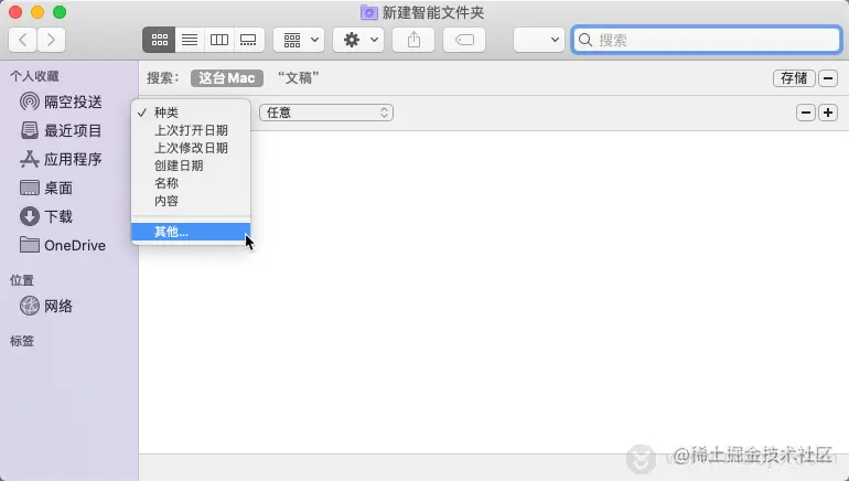 这次要使用的是MacBook 内建的Finder 功能来解决Mac 空间不足的问题,我们先随便打开一个Finder 窗口,在上方的选项上,选择「文件」>「新增智能文件夹」。