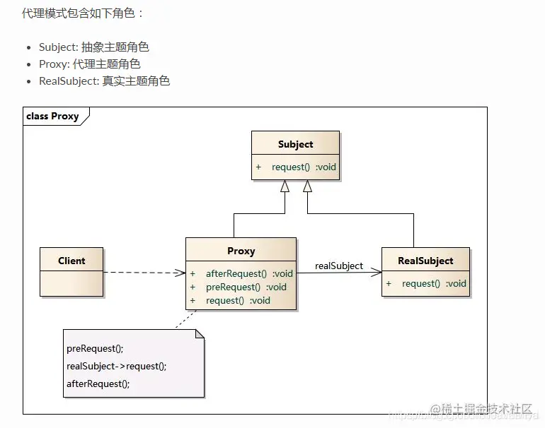 代理背后一般至少有一个实际对象,代理的外部功能和实际对象一般是一样的,用户与代理打交道,不直接接触实际对象,甚至不知道实际对象的存在。