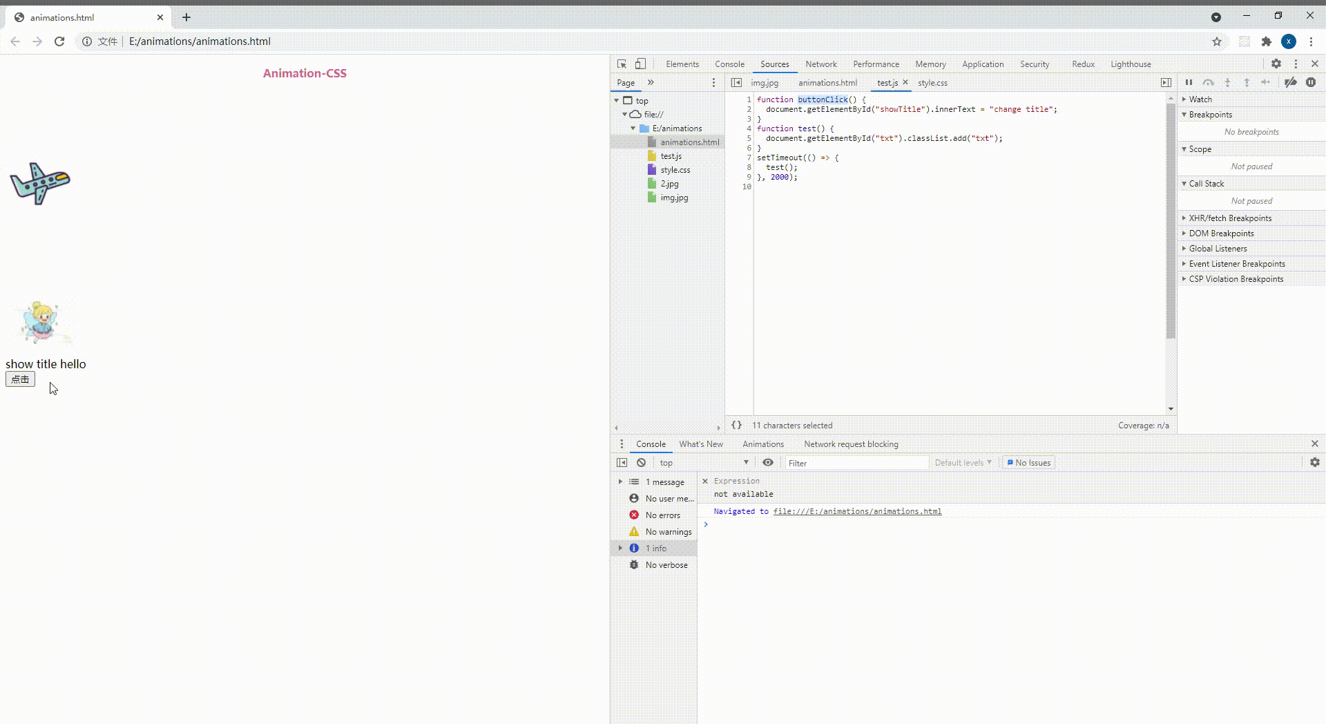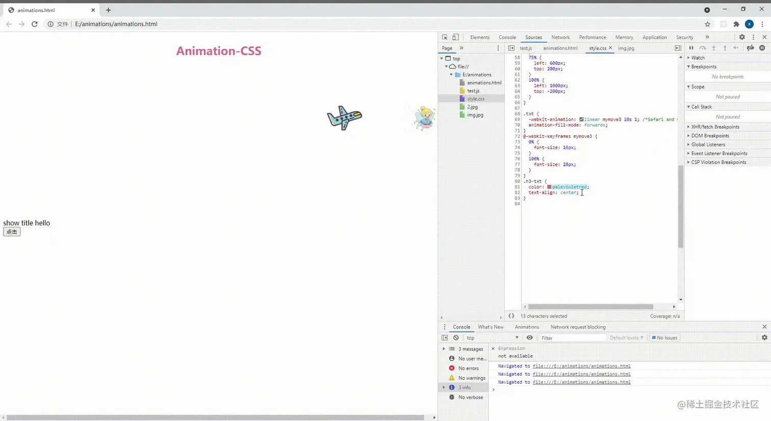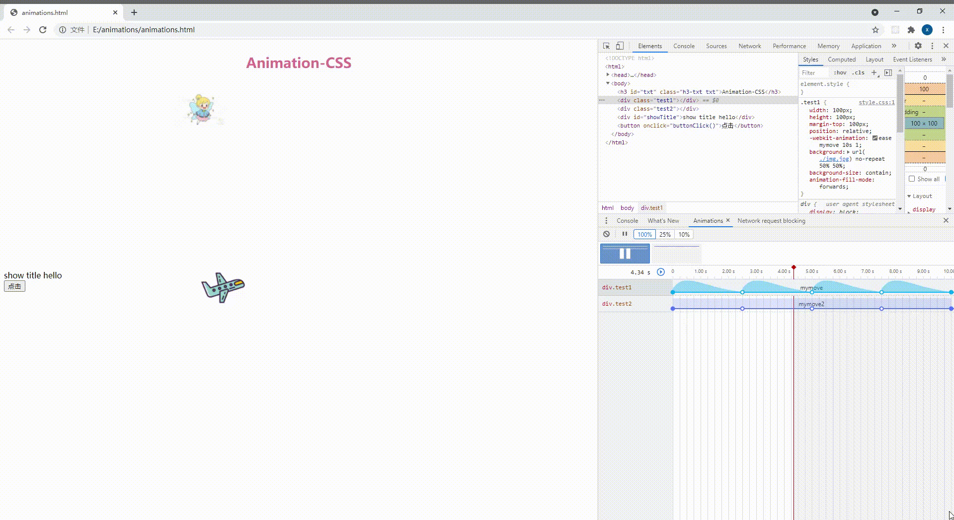 将鼠标悬停在动画上以在视口中突出显示它。单击动画以在“元素”面板中将其选中。