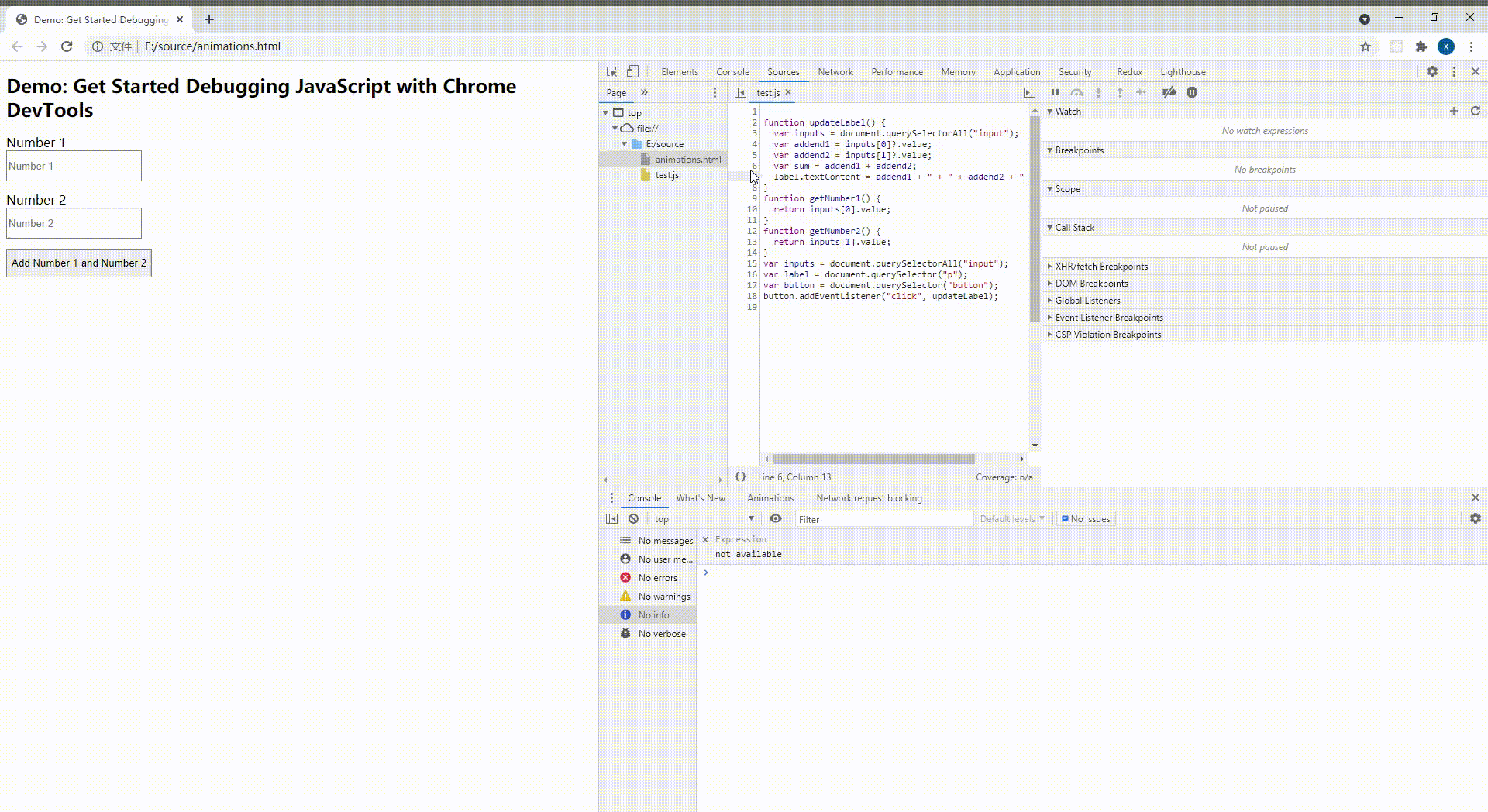 在执行函数打个断点,我们可以在Scope面板看到声明的变量,在Watch面板可以执行js,我们执行typeof 可以认证我们的猜想,字符串相加所以结果不正确,debugg的时候在console我们可以引用函数执行环境的变量,再进行parseInt转换发现能得到正确的结果。