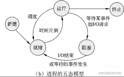 (3)阻塞状态指进程因发生某事件(如请求 I/O、申请缓冲空间等)而暂停执行时的状态,亦即进程的执行受到阻塞,故称这种暂停状态为阻塞状态,有时也称为“等待”状态,或“睡眠”状态。通常将处于阻塞状态的进程排成一个队列,称为阻塞队列。